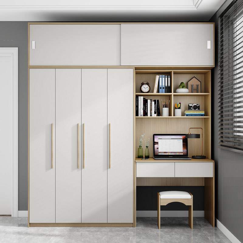 简约现代小户型家用卧室连体书桌柜儿童学习桌电脑桌衣柜一体组合
