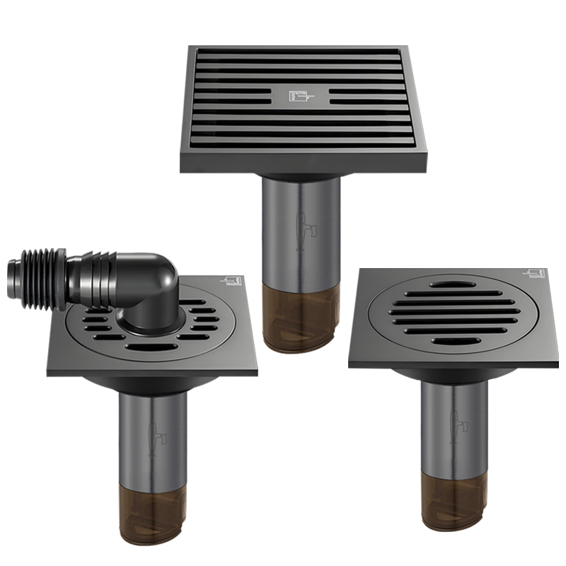 潜水艇地漏旗舰店枪灰黄铜断层加长卫生间淋浴地漏干湿区通用加长