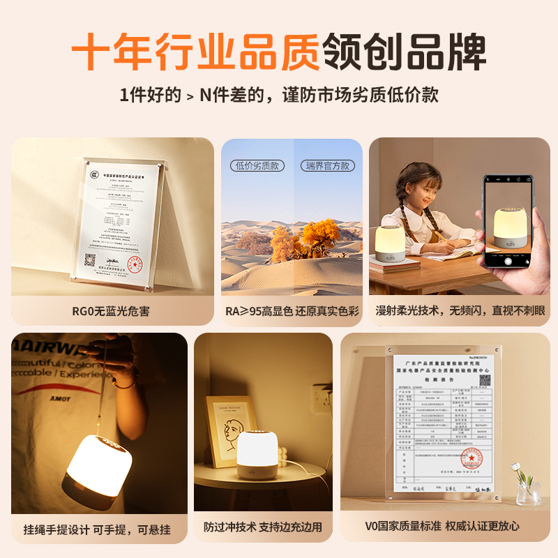 2025新款 遥控小夜灯卧室床头睡眠护眼起夜间家用定时充电台灯高级