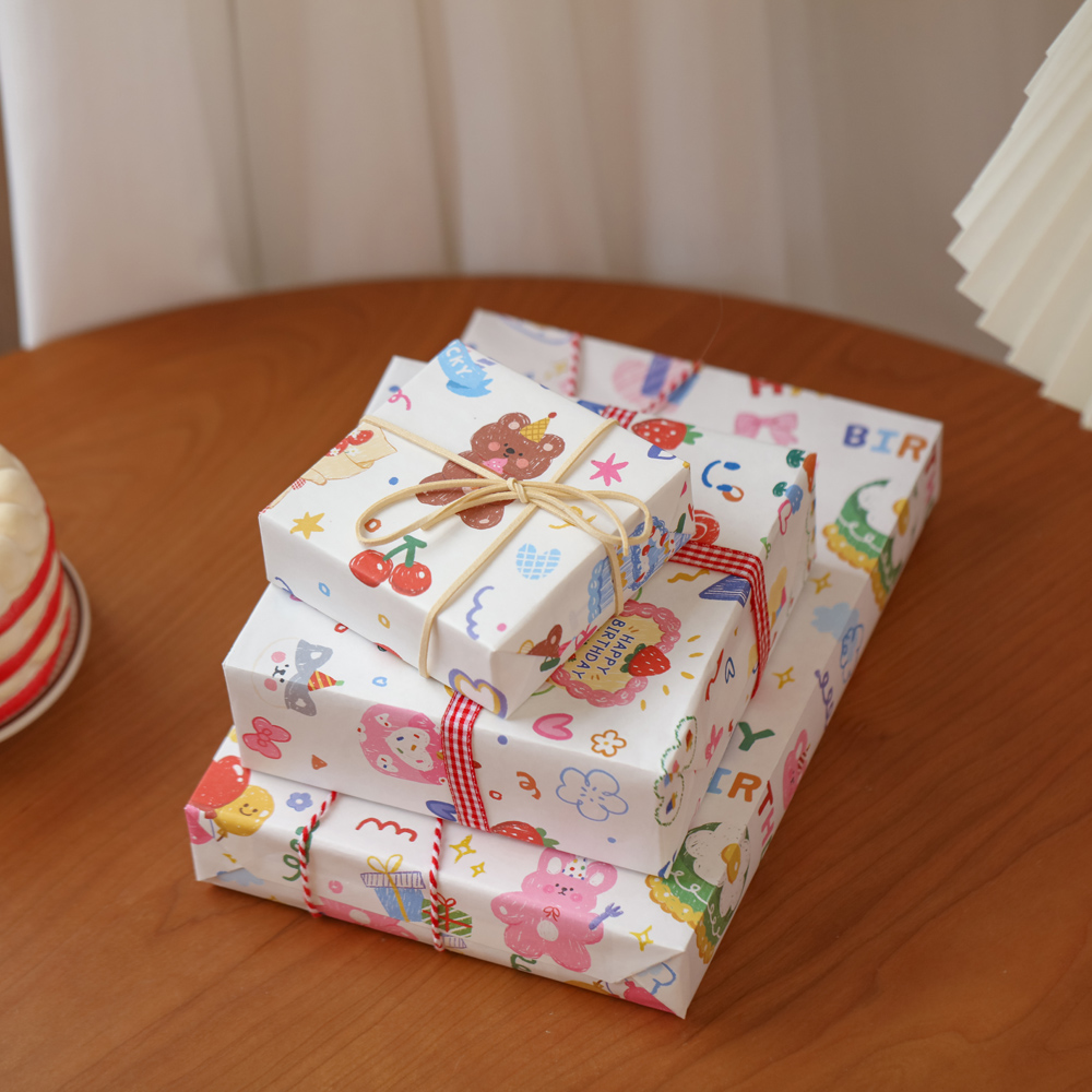 儿童生日礼物包装 彩纸玩具零食糖果牛皮纸高颜值 纸高级感生日快乐礼品纸大尺寸打包材料卡通可爱包书纸礼盒