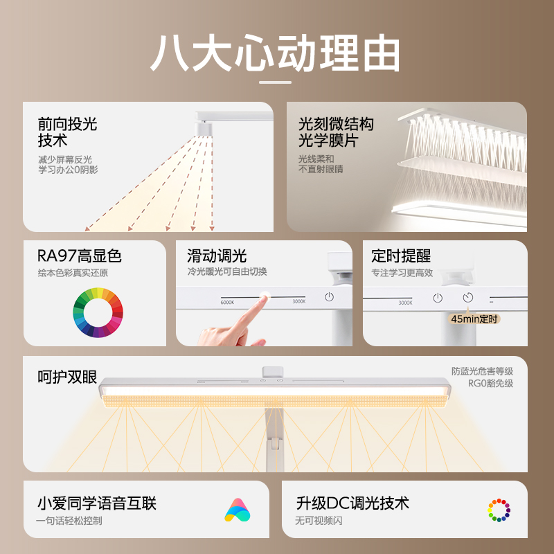 台灯学习专用护眼灯儿童阅读书桌已接入米家APP智能国AA级台风新