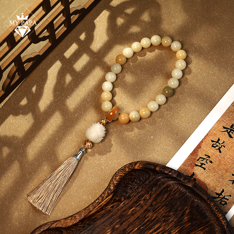 MYPAPA文玩木饰11MM奶黄团子菩提根绕指柔文玩车挂手持礼物