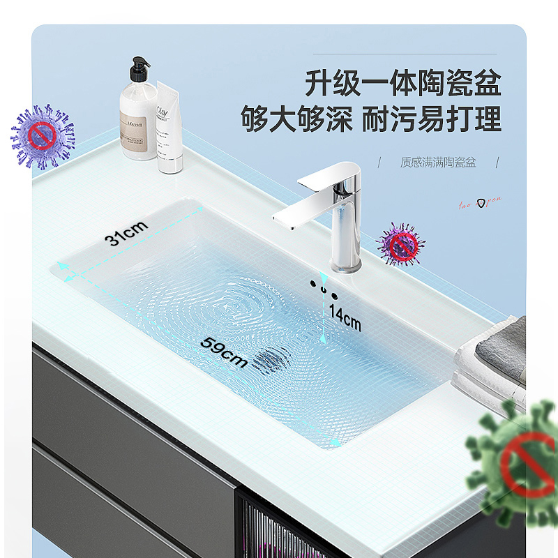 顾家家居轻奢智能浴室柜组合陶瓷一体盆卫浴柜洗漱台法式 智能镜