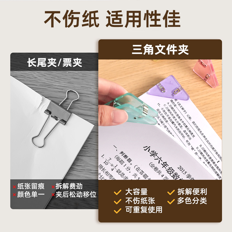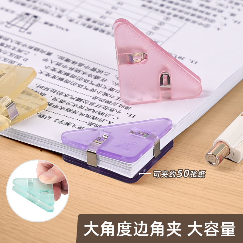 得力三角夹多功能试卷书本夹直角边角夹固定防卷边彩色夹子简约ins收纳整理神器文件夹初中生小学生卷子夹