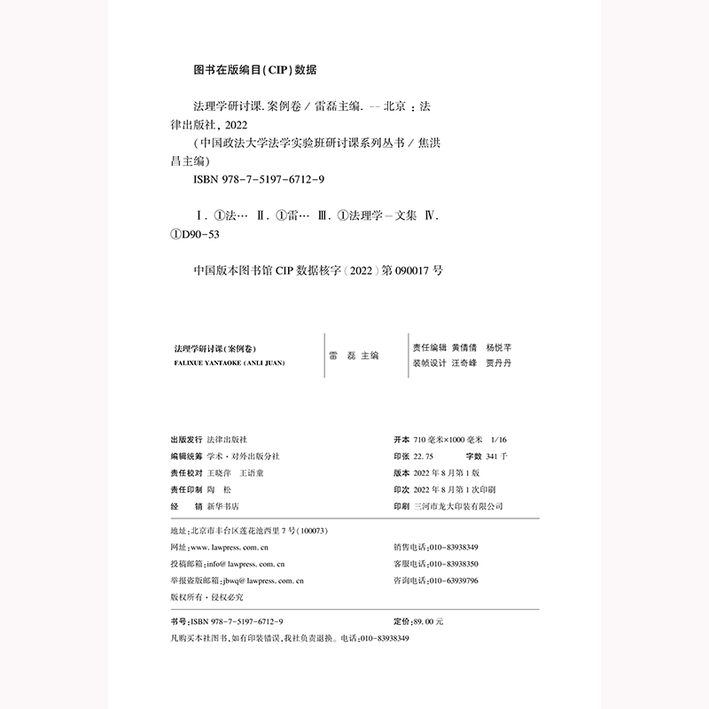 法理学研讨课 法律出版 案例卷 中国政法大学法学实验班研讨课系列丛书 社9787519767129 雷磊 正版