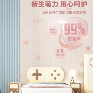 抗菌墙纸自粘儿童房卧室墙贴防潮防水墙布壁纸墙面装 饰墙壁贴纸