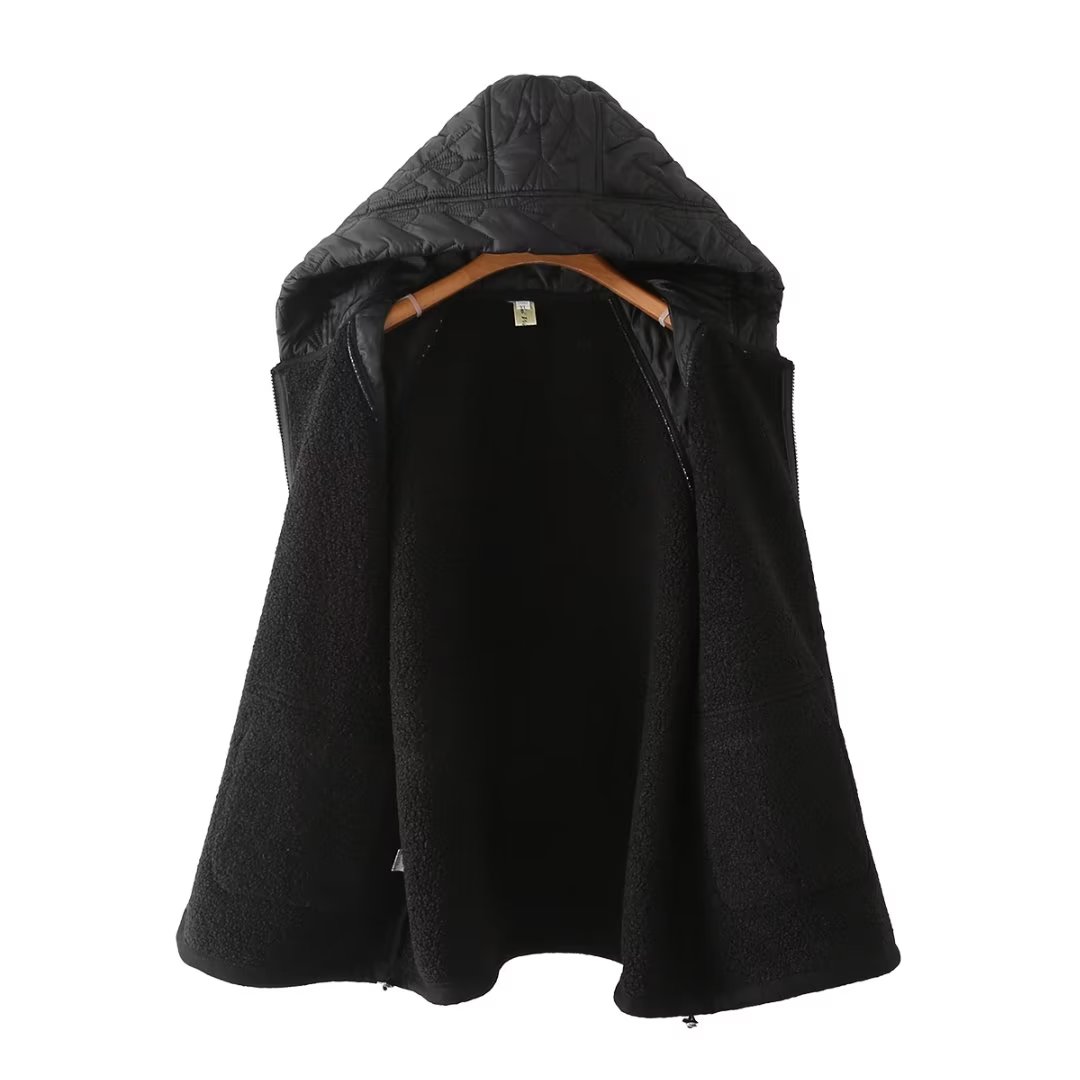 胖妈妈棉衣棉服女毛呢拼接加绒加厚连帽外套黑气洋气大码 棉袄 女装