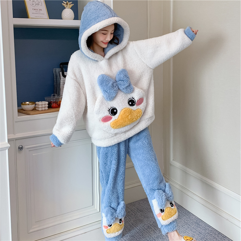 加绒法兰绒家居服套装 睡衣女冬加厚保暖珊瑚绒春秋2025年新款 冬季