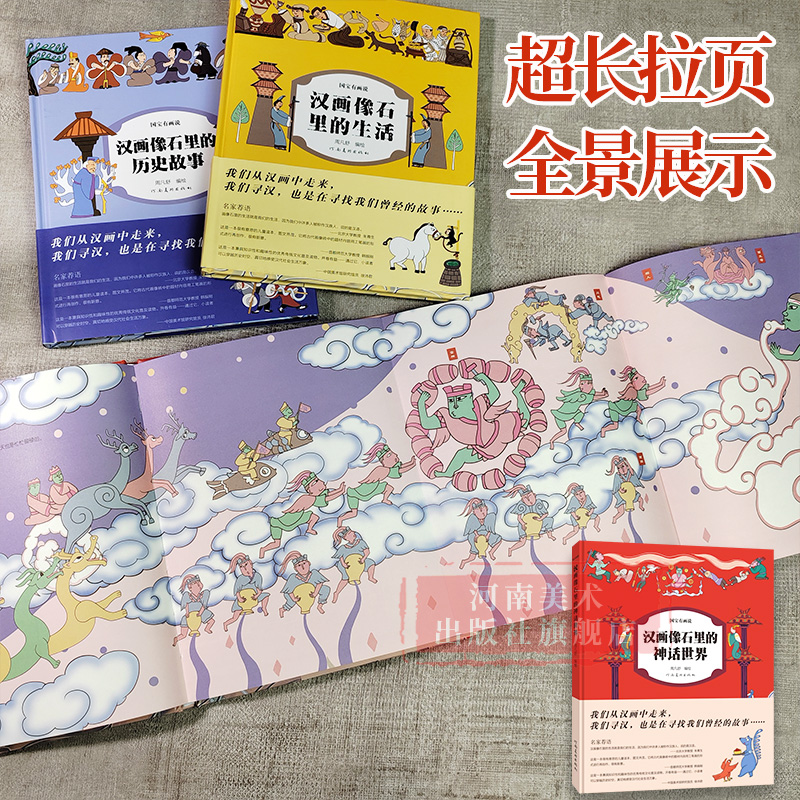神话世界 汉画像石里 12岁儿童学生课外漫画科普读物5章节36主题内容 拉页长卷国宝有画说 黑白拓片转化成彩色动漫 旗舰正版