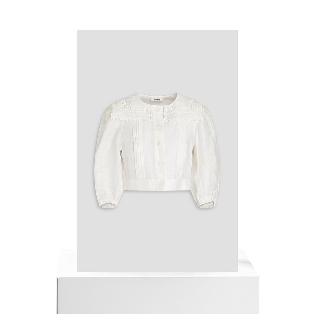 凸纹花边蕾丝边薄纱上衣 短款 SFPCM0086810W 女士 香港直邮Sandro