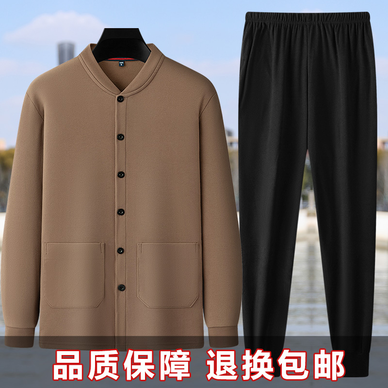 加绒加厚V领秋冬大码 爸爸套装 长袖 保暖开衫 长裤 申本品牌德绒男士