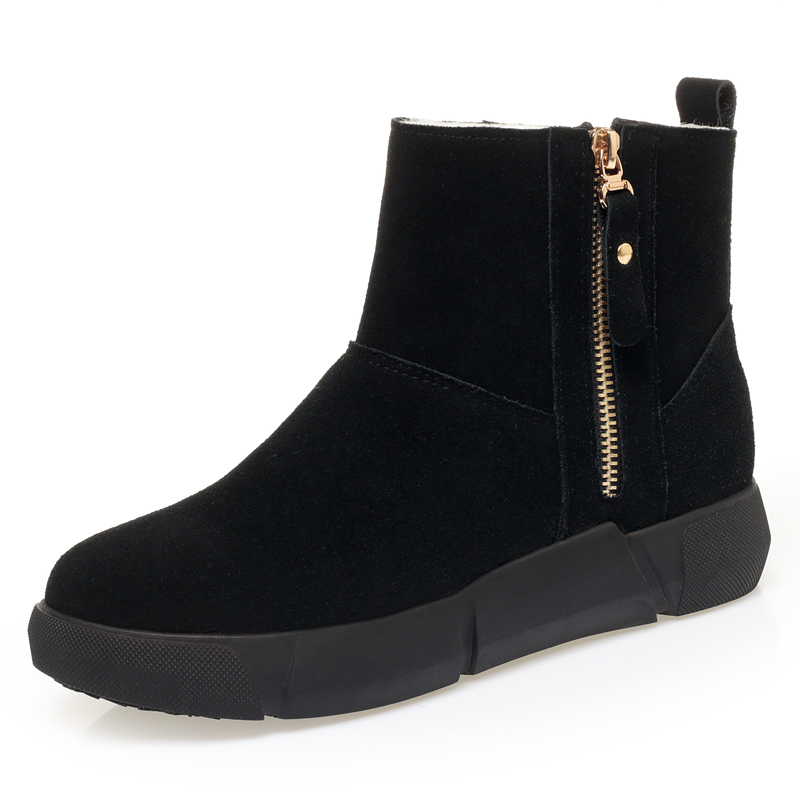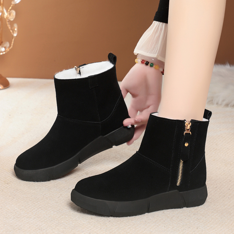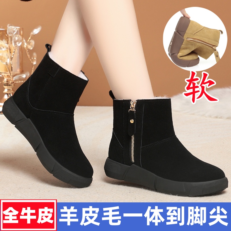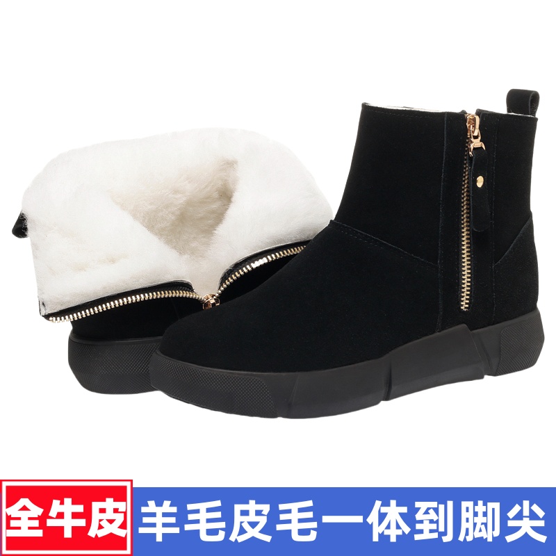 加绒加厚保暖防滑靴子 女真皮短靴皮毛一体羊毛雪地靴女款 冬季 棉鞋