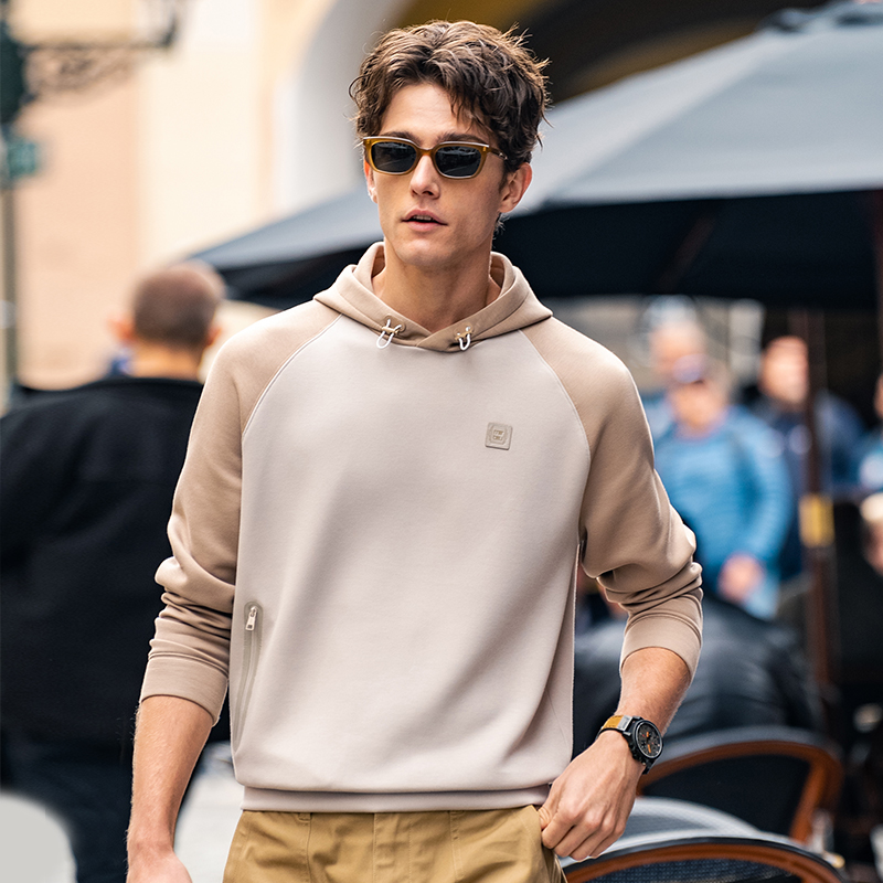 休闲KT15732 宽松上衣秋冬美式 MrBu布先生带帽卫衣男款 撞色插肩袖