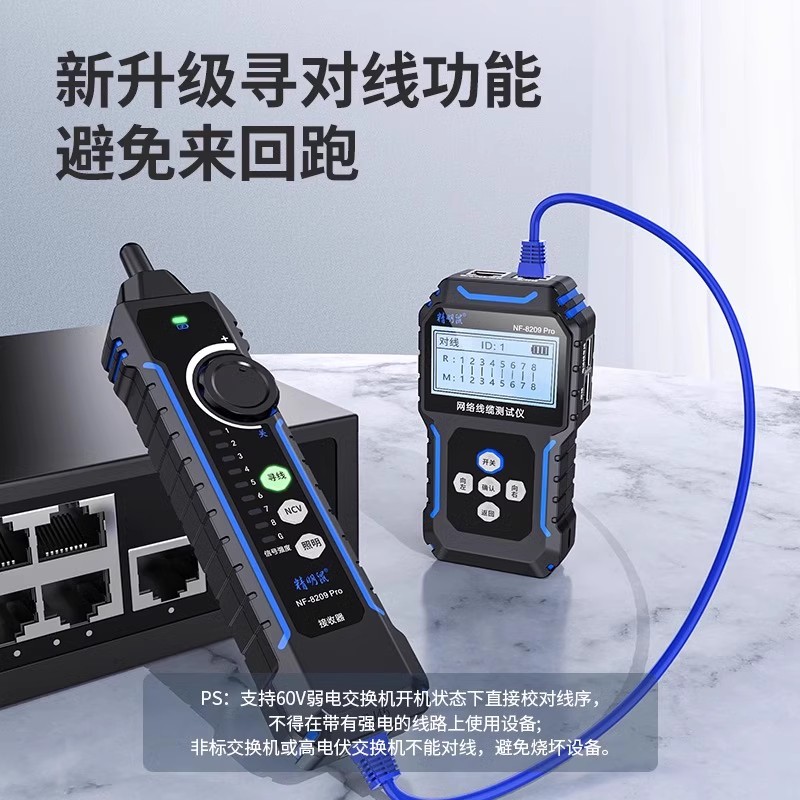 精明鼠NF 8209Pro寻线仪网络测试抗干扰长度断点POE带电数字无噪音寻线器多功能充电单头网线检测器巡线仪