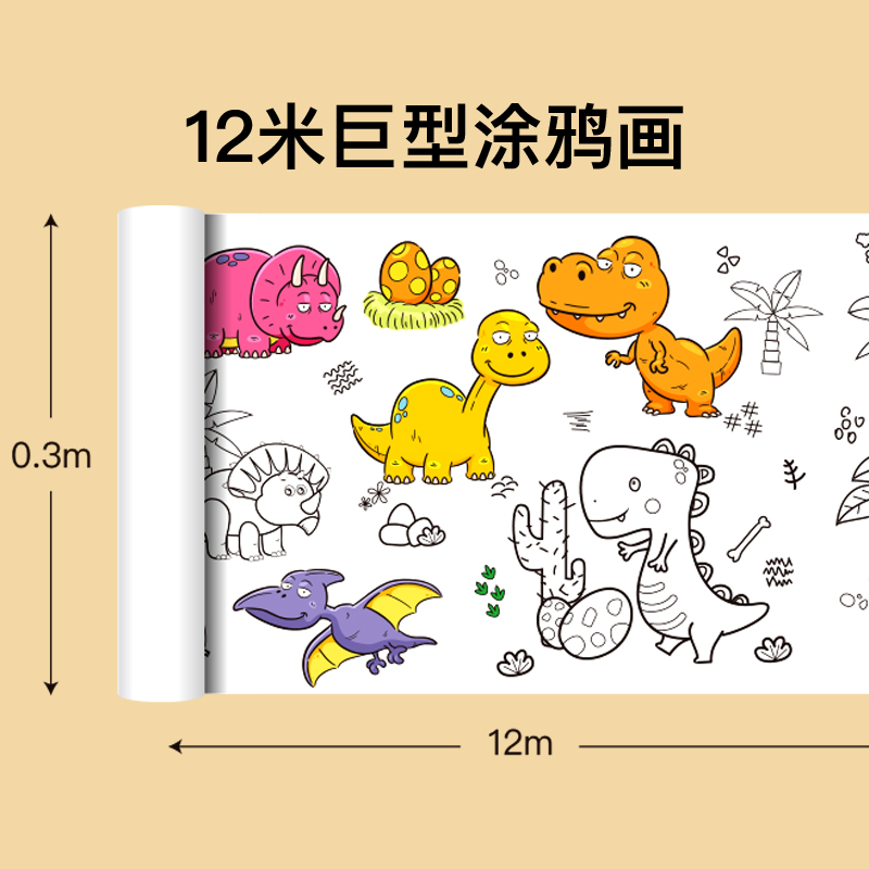 10M超长儿童涂鸦绘画大卷纸幼儿园宝宝涂色画布填色图画册画画本