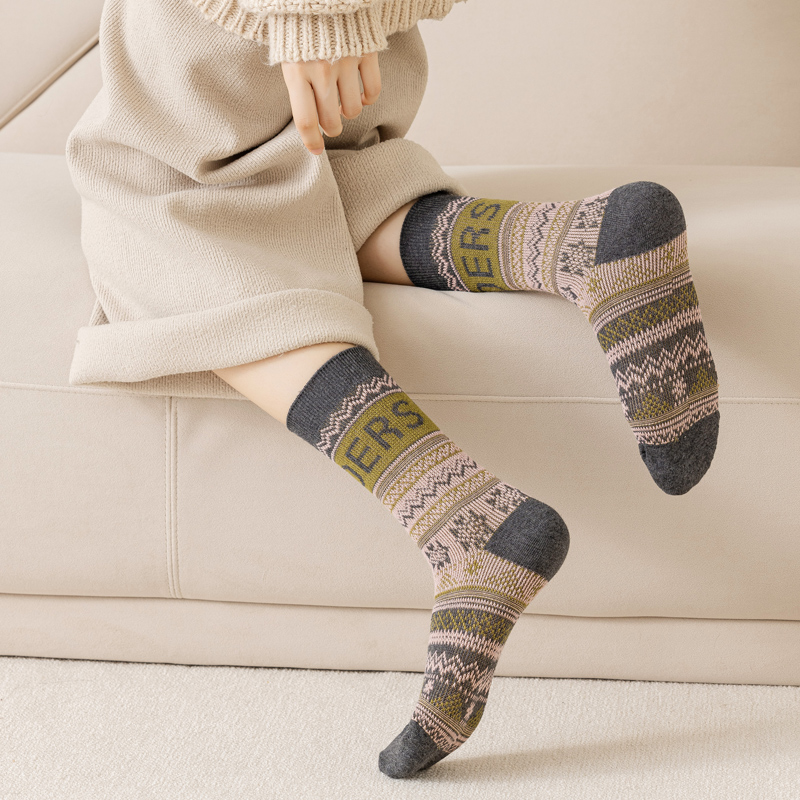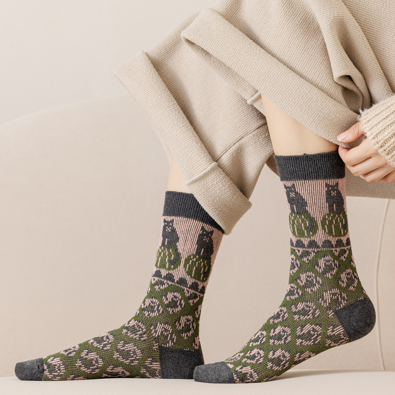 袜子女中筒袜春秋季 女士长筒袜 复古千鸟格棉袜防臭吸汗秋冬网红款
