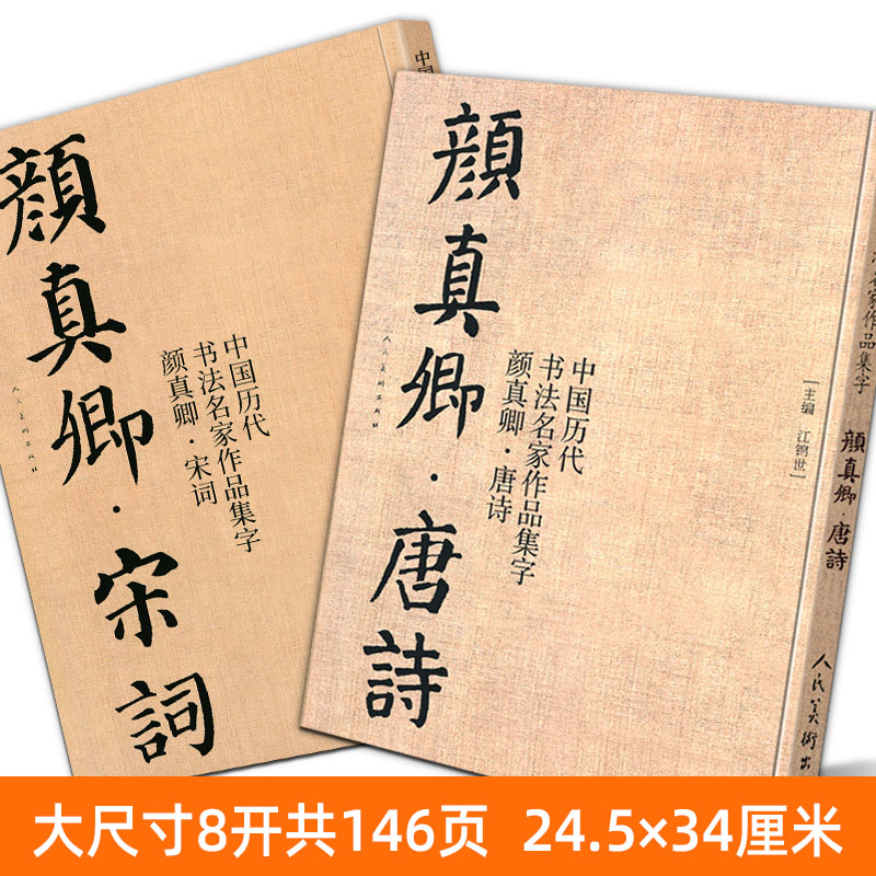 共2册8开 颜体集字古诗词颜真卿楷书字帖全集毛笔临摹范本碑帖放大 颜真卿唐诗 中国历代书法名家作品集字 人民美术江锦世 宋词