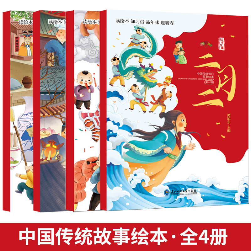 起源风俗习惯书籍 童话绘本读物幼儿节日文化 中国传统节日故事绘本全套4册除夕与年元 宵节小年二月二儿童故事书3一4一5一6岁经典