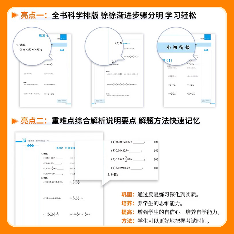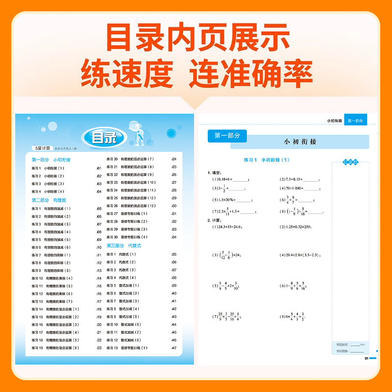 江苏版 初一二同步练习题学霸计算解决问题专项强化训练口算题天天练 2025秋初中数学5星计算达人解题达人七八九年级上下册苏科版