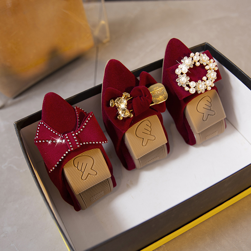 尖头软底孕妇单鞋 红色婚鞋 秀禾婚纱两穿平底鞋 新娘鞋 女2025年新款