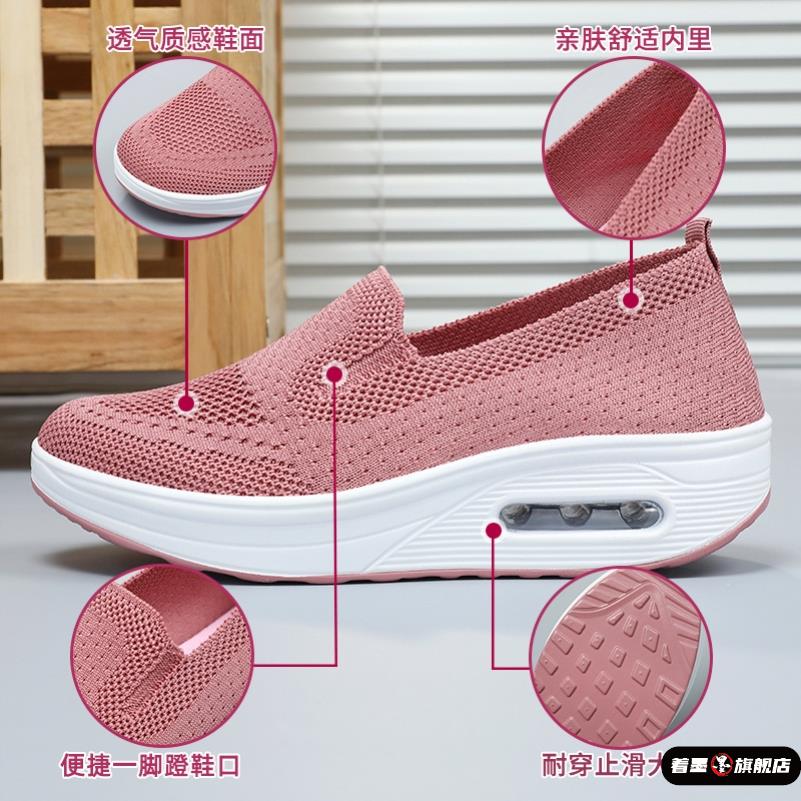 女布鞋 摇摇鞋 软底套脚单鞋 浅口厚底网面透气运动休闲鞋 女春夏新款