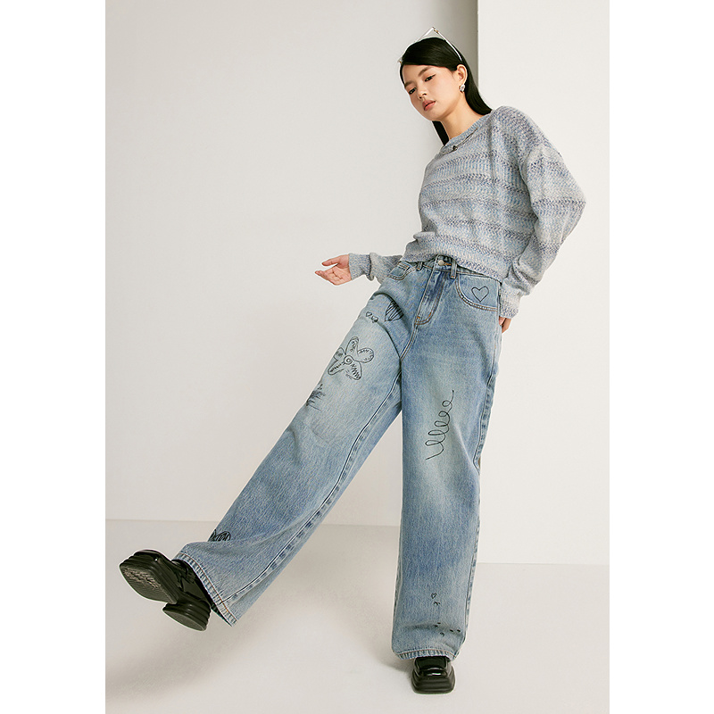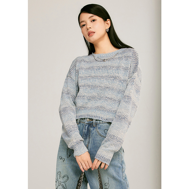 通勤宽松圆领毛衫 洋气上衣女装 2025春季 气质针织衫 新款 EF优雅时尚