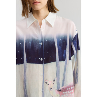 女宽松廓形双口袋长袖 Eland衣恋衬衫 牛仔上衣25春新款 天然麻