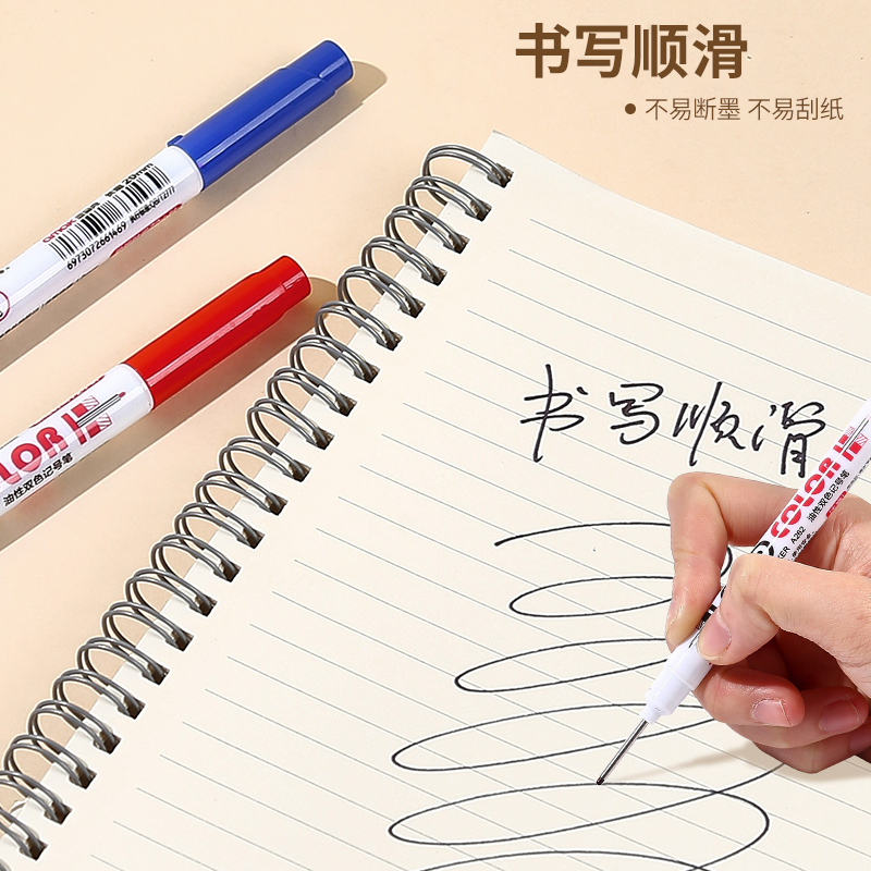 大双头记号笔油性防水不掉色黑色红粗头大号工业工地防油勾线笔加粗油墨水粗笔签名笔快递专用记好号笔瓷砖