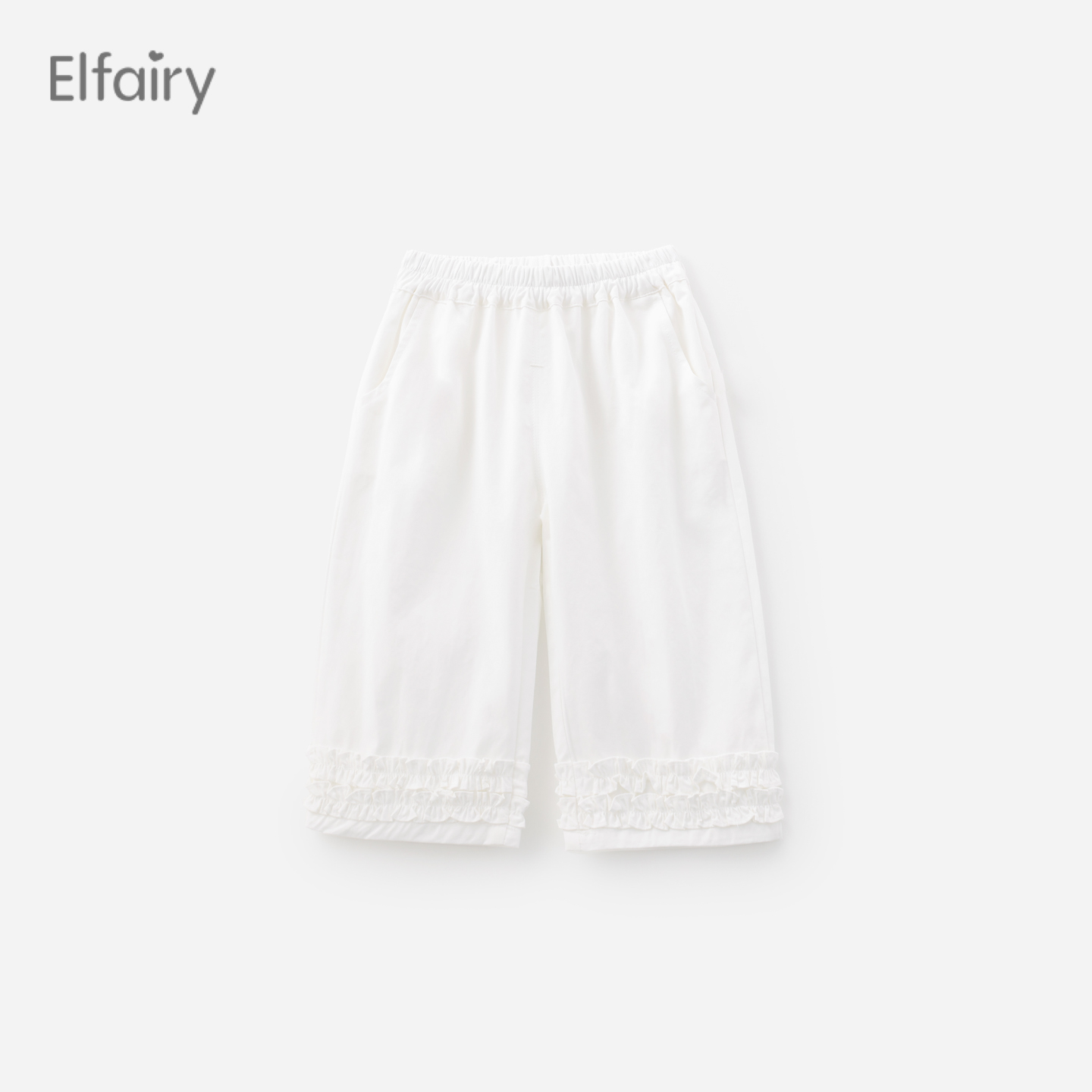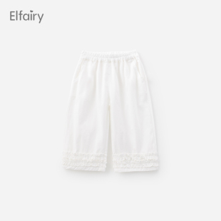 女宝宝休闲裤 秋装 纯棉洋气 子公主风儿童花边直筒裤 Elfairy女童裤