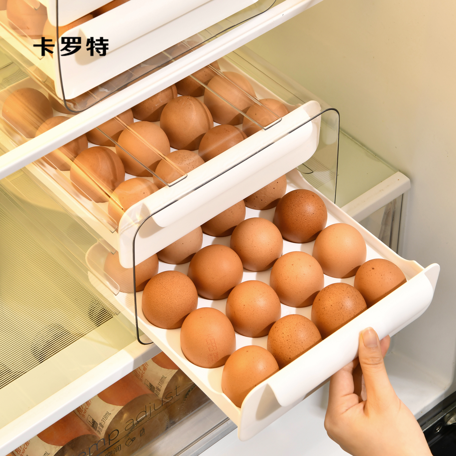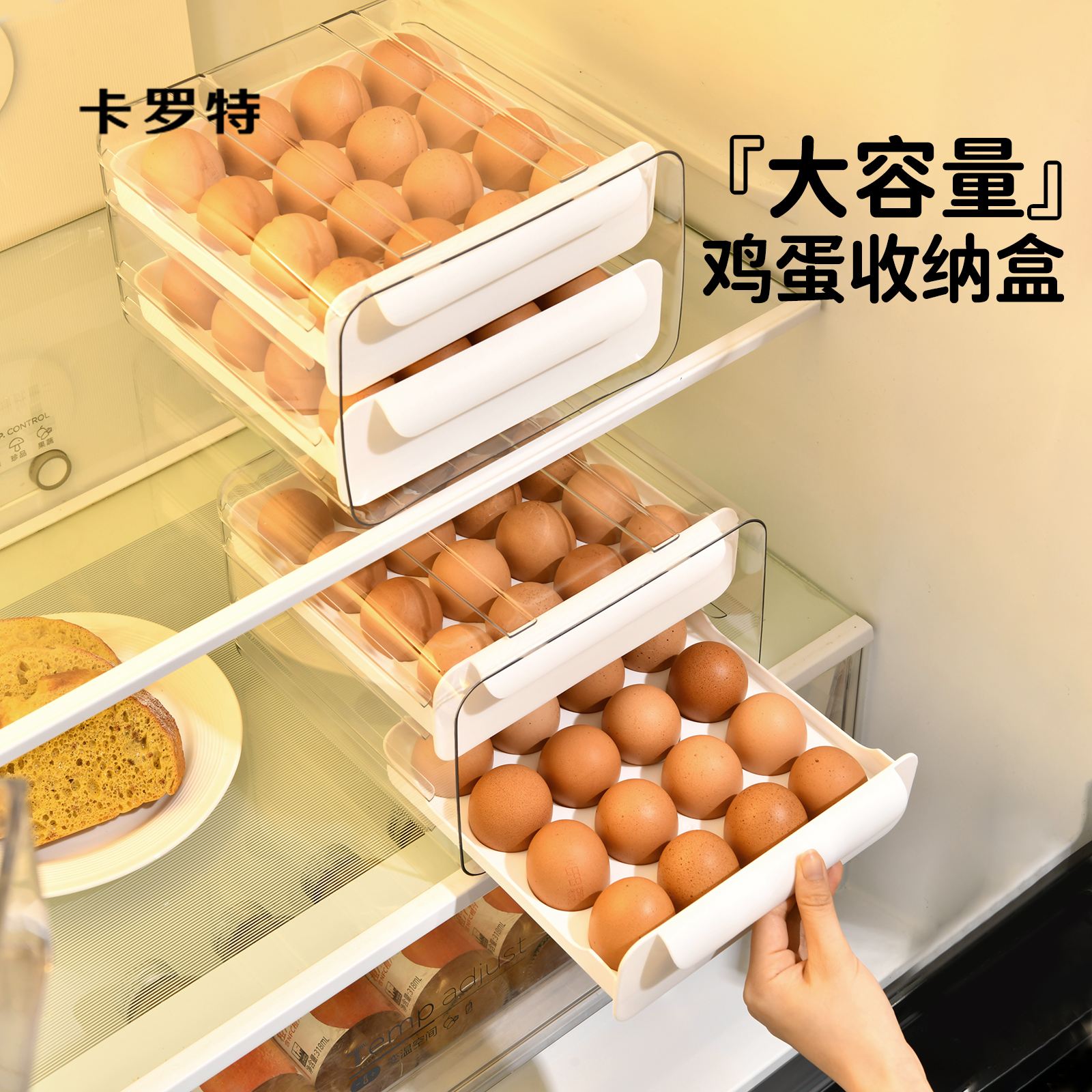 卡罗特鸡蛋收纳盒冰箱用抽屉式 家用厨房保鲜放鸡蛋存放盒整理盒