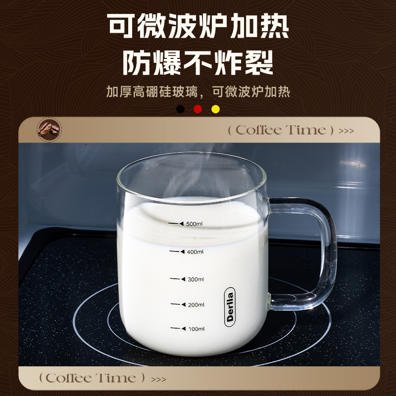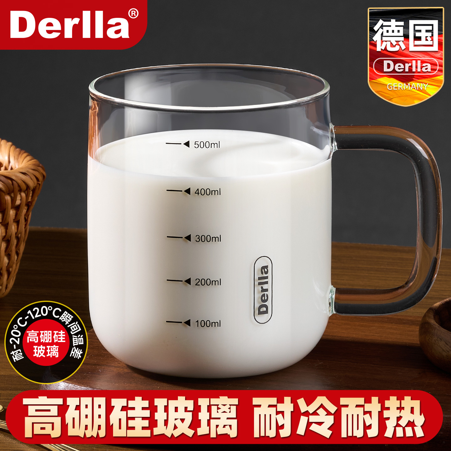 德国玻璃牛奶杯子儿童早餐专用带刻度奶粉微波炉可加热家用喝水杯
