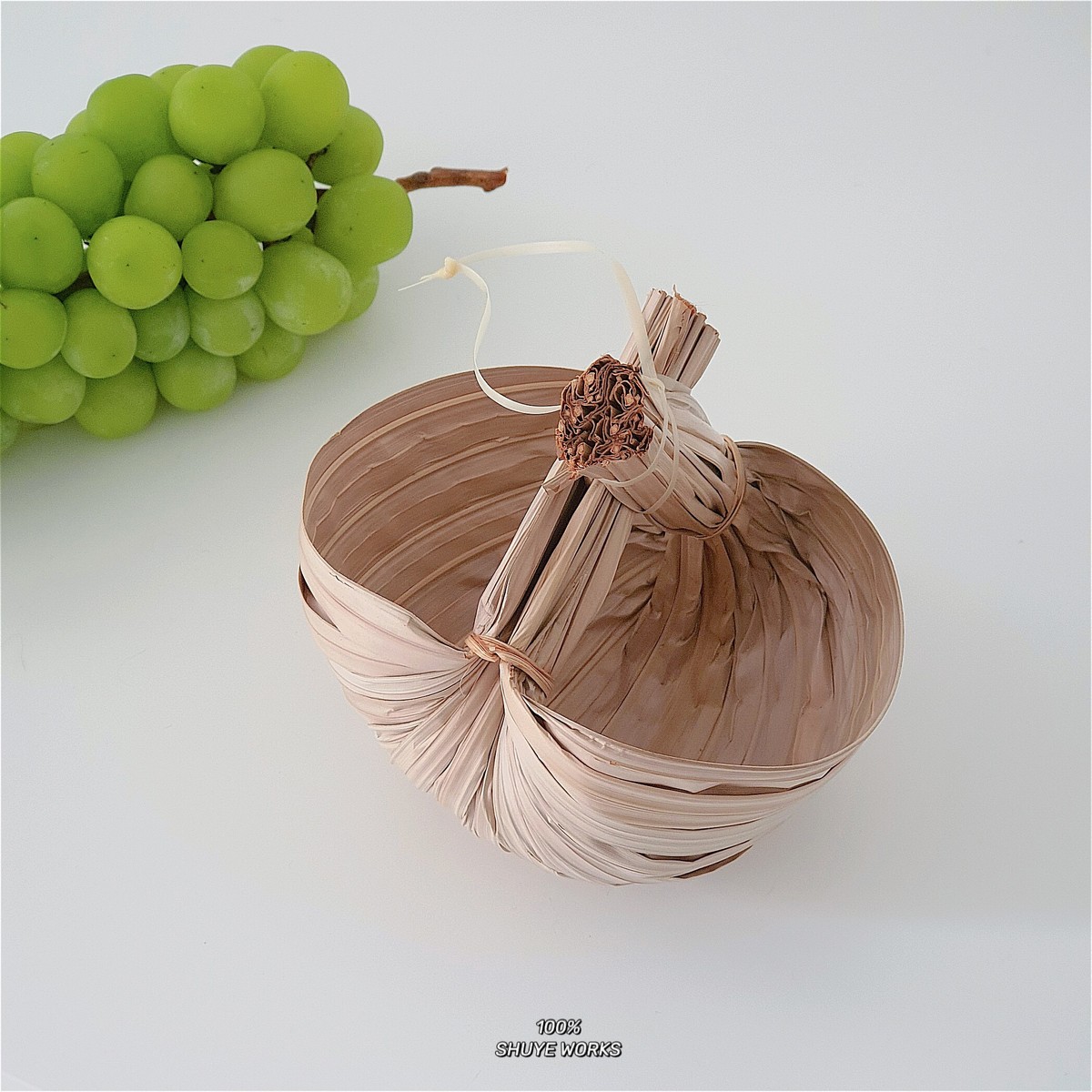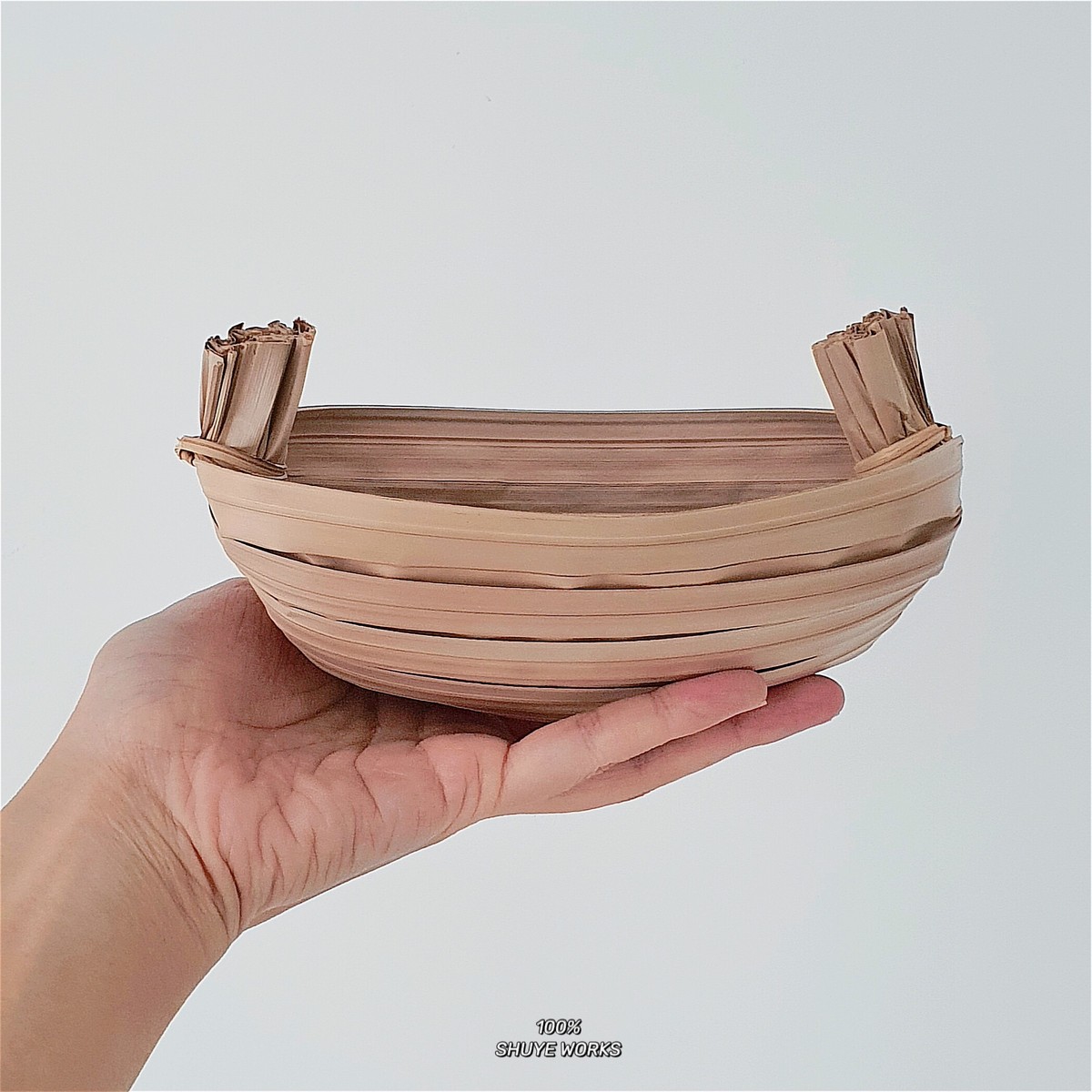 东南亚老挝泰国棕榈叶冰沙碗泰式 椰子冰沙篮子奶茶泡鲁达编织提篮