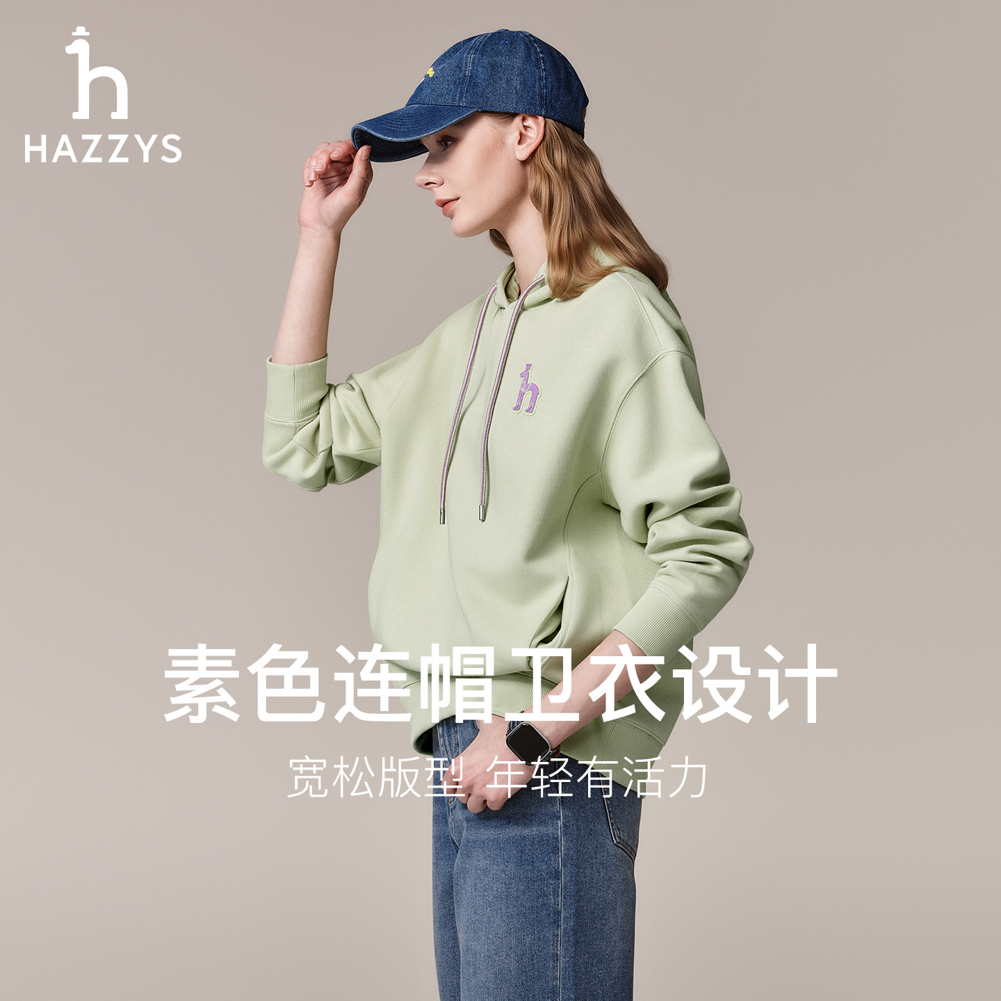 T恤潮 长袖 Hazzys哈吉斯女装 连帽卫衣女秋冬宽松通勤休闲上衣时尚