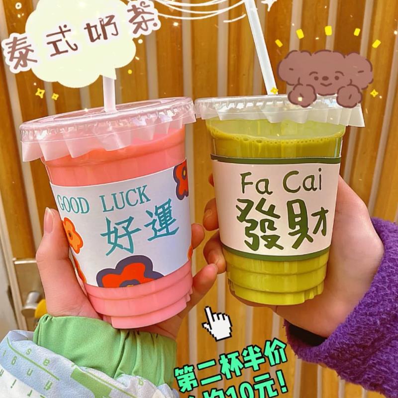 泰式 奶茶通用纸杯套发财暴富ins网红咖啡隔热杯套吸管套订制logo