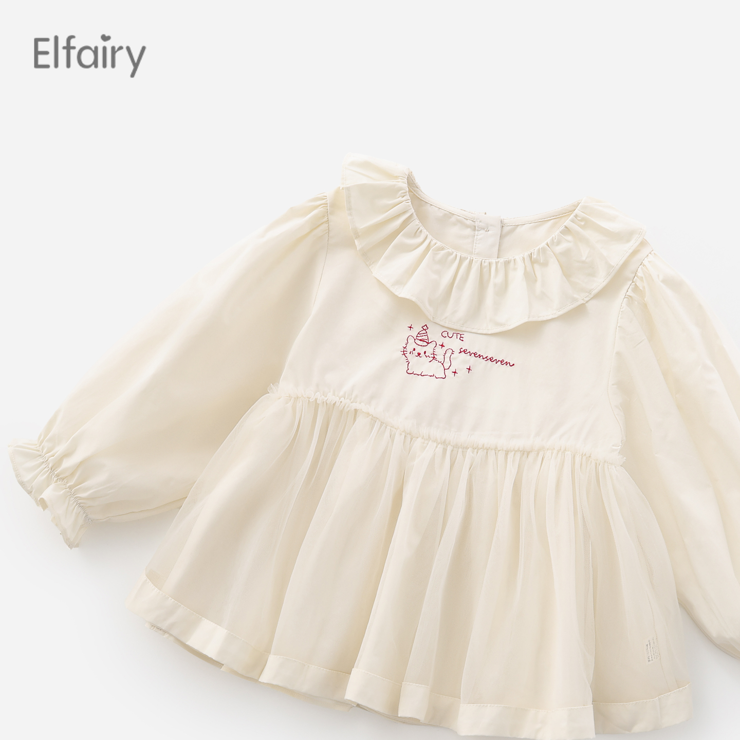 衬衣小儿童春秋上衣 纯棉女童秋装 Elfairy女宝宝衬衫 可爱娃娃裙衫