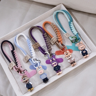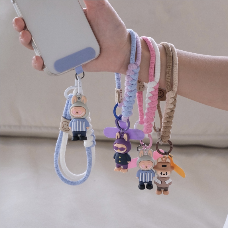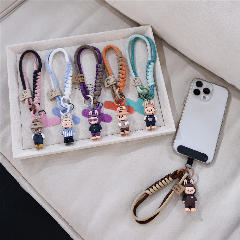 英伦风手机挂绳手机链防丢短款 撞色编织卡通可爱公仔手腕绳百搭高档腕带手绳户外运动男女手提多股加粗夹片