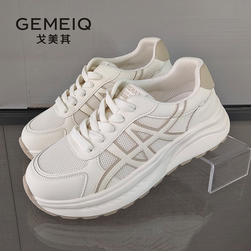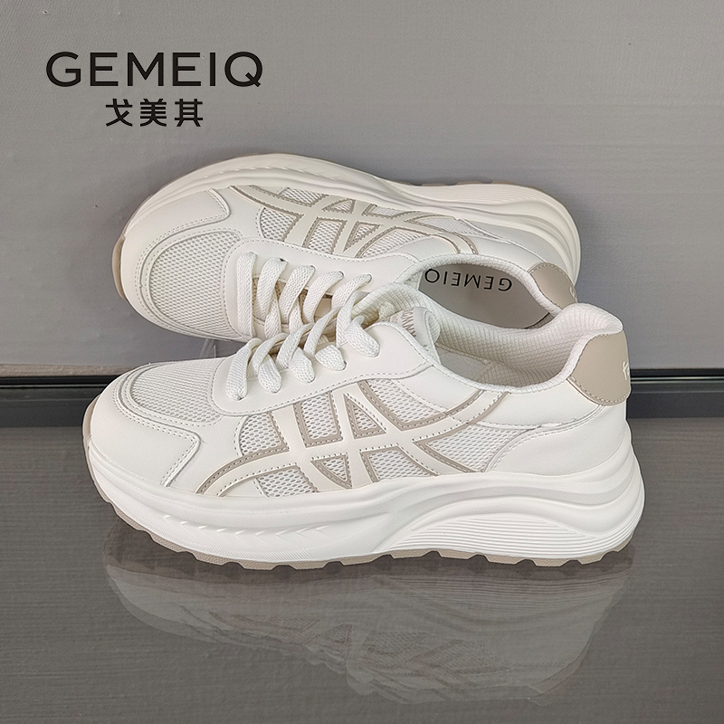 女防滑运动鞋 百搭休闲鞋 2025秋季 轻便旅游鞋 新款 戈美其网面小白鞋
