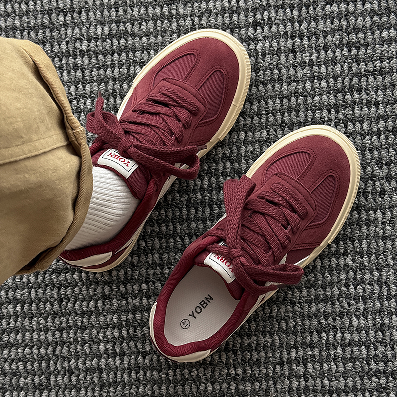新品 2025年秋季 皮面红色百搭休闲 学生厚底增高运动板鞋 乔丹女款