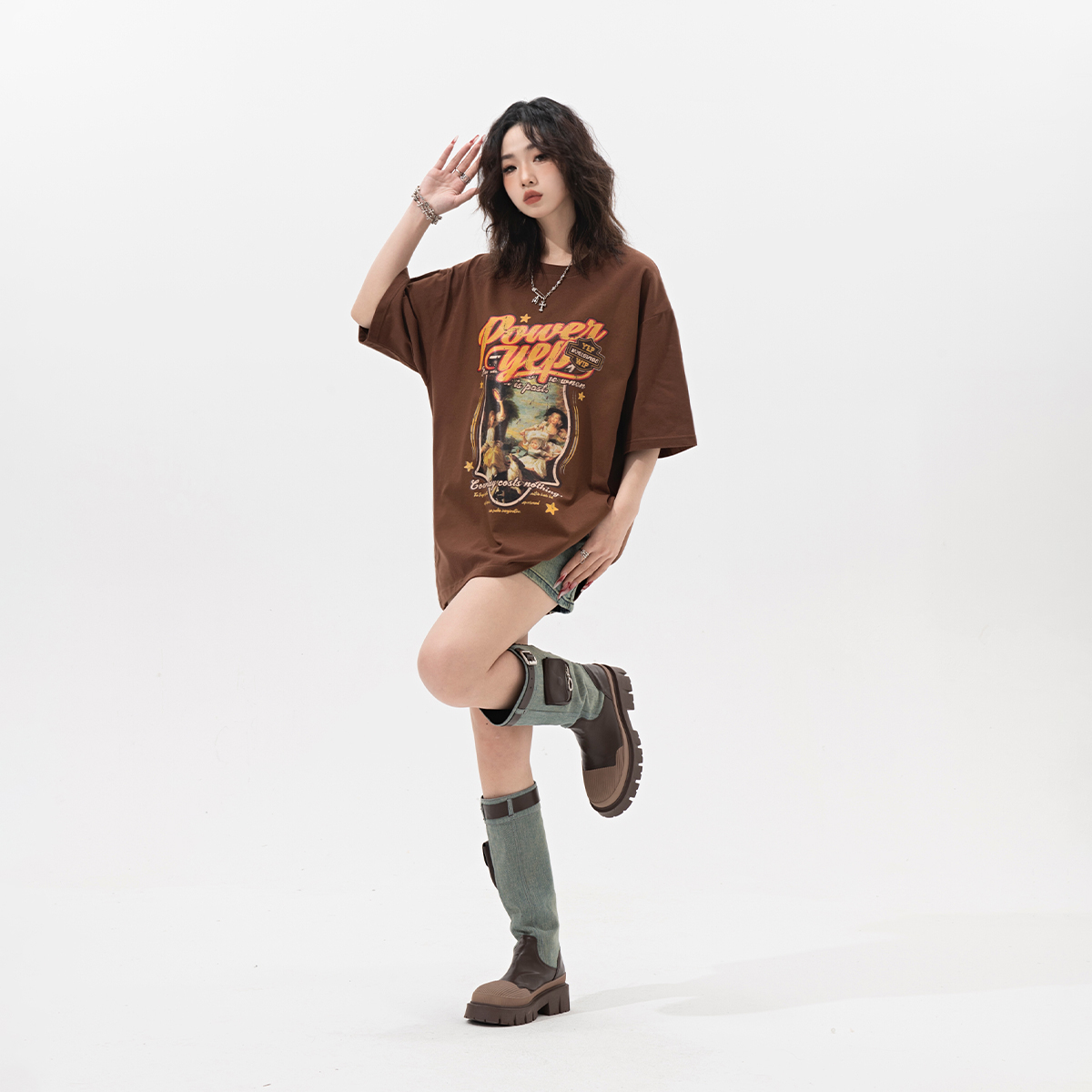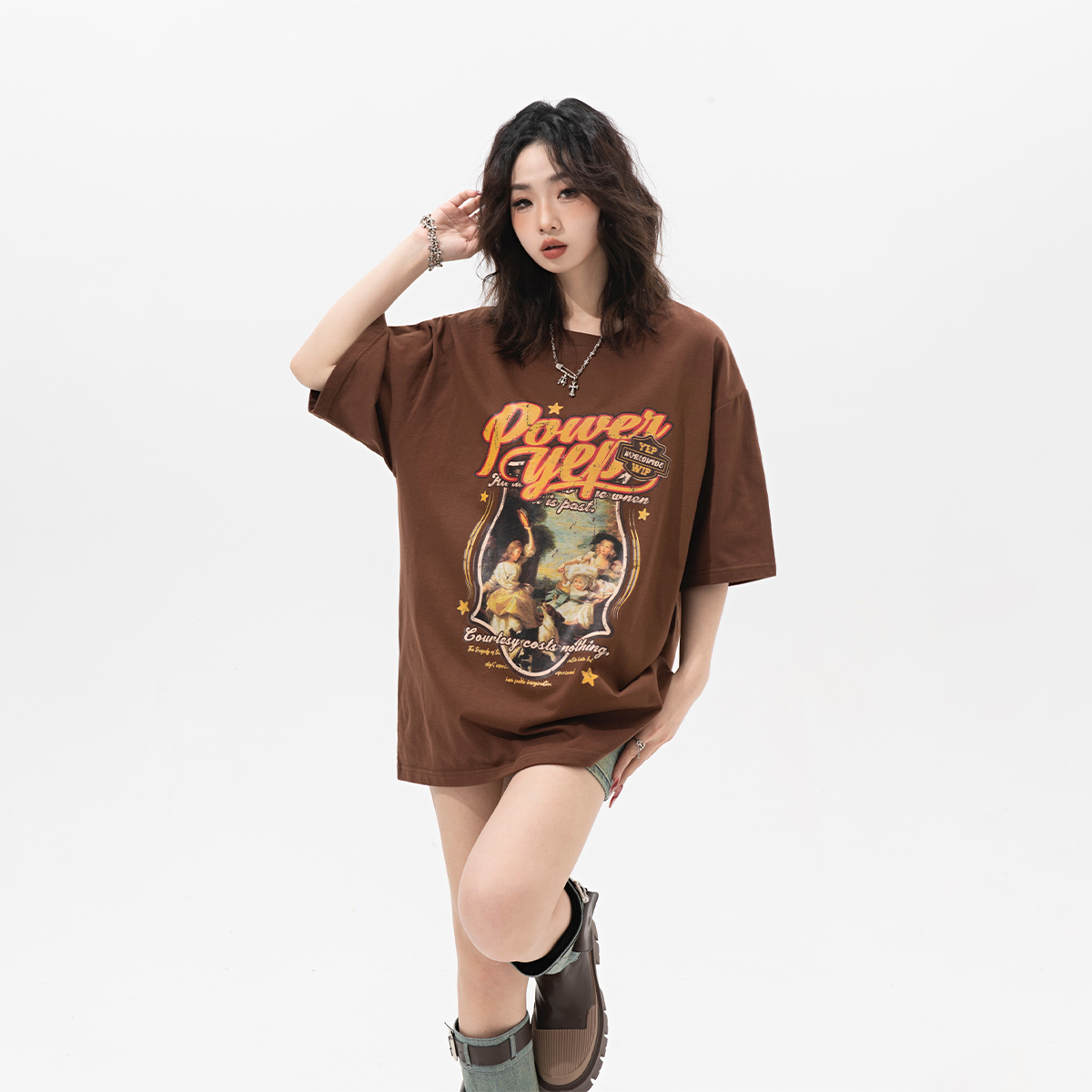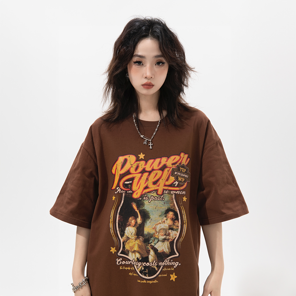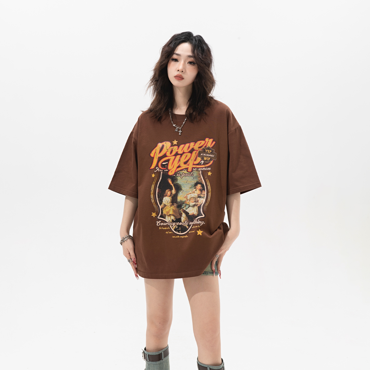情侣装 YEP复古美拉德穿搭纯棉短袖 宽松半袖 2025新款 上衣 t恤女夏季