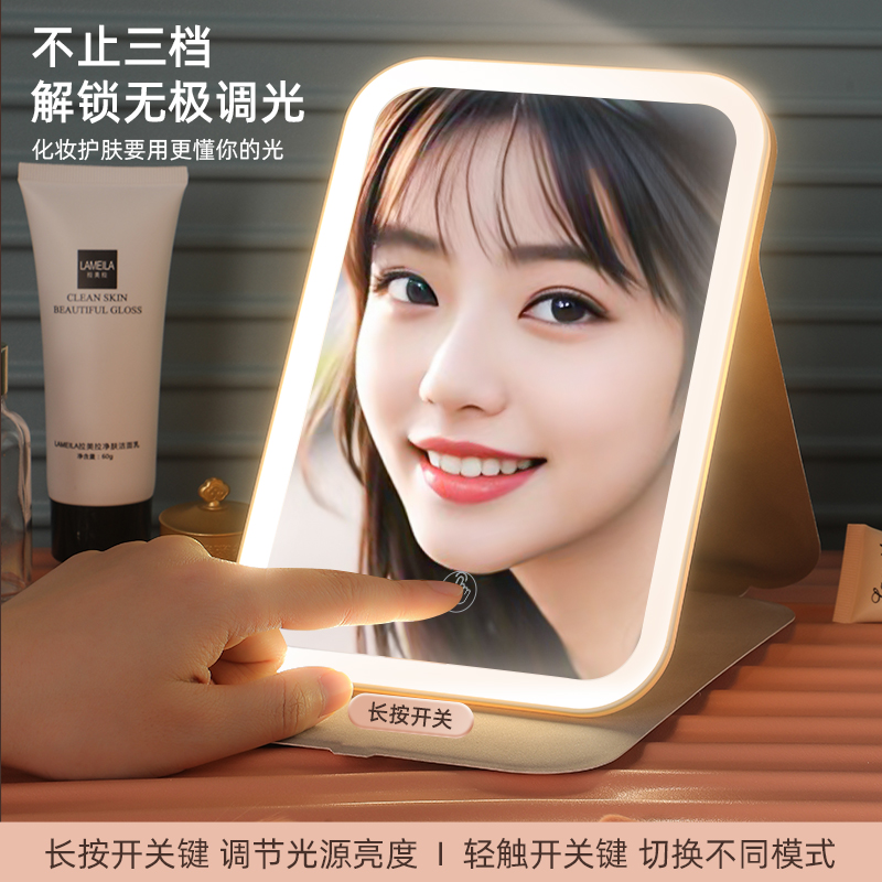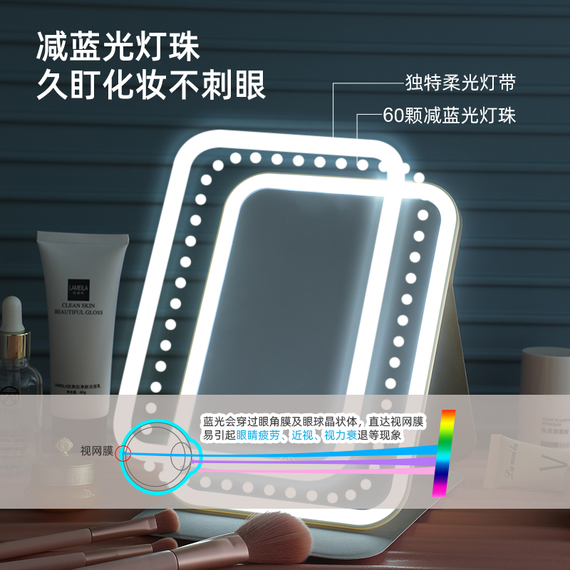 LED化妆镜带灯台式 桌面可立家用学生宿舍手持发光便携折叠小镜子