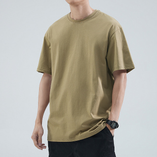 潮牌宽松休闲打底衫 hansca 纯棉美式 t恤男夏季 260g重磅三本针短袖