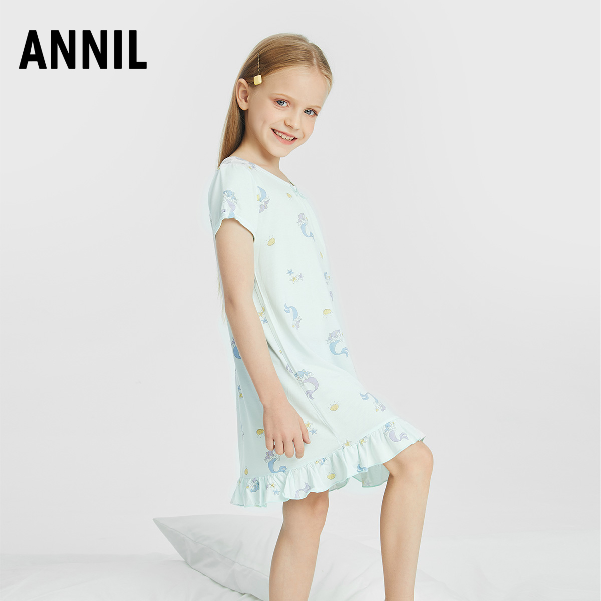 新款 连衣睡裙2025夏季 莫代尔柔软丝滑冰爽舒适 女童短袖 安奈儿童装