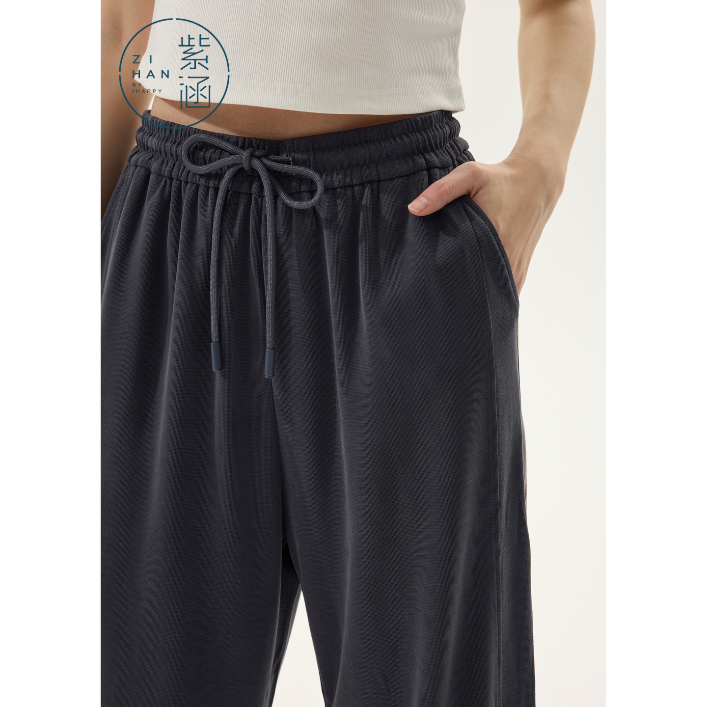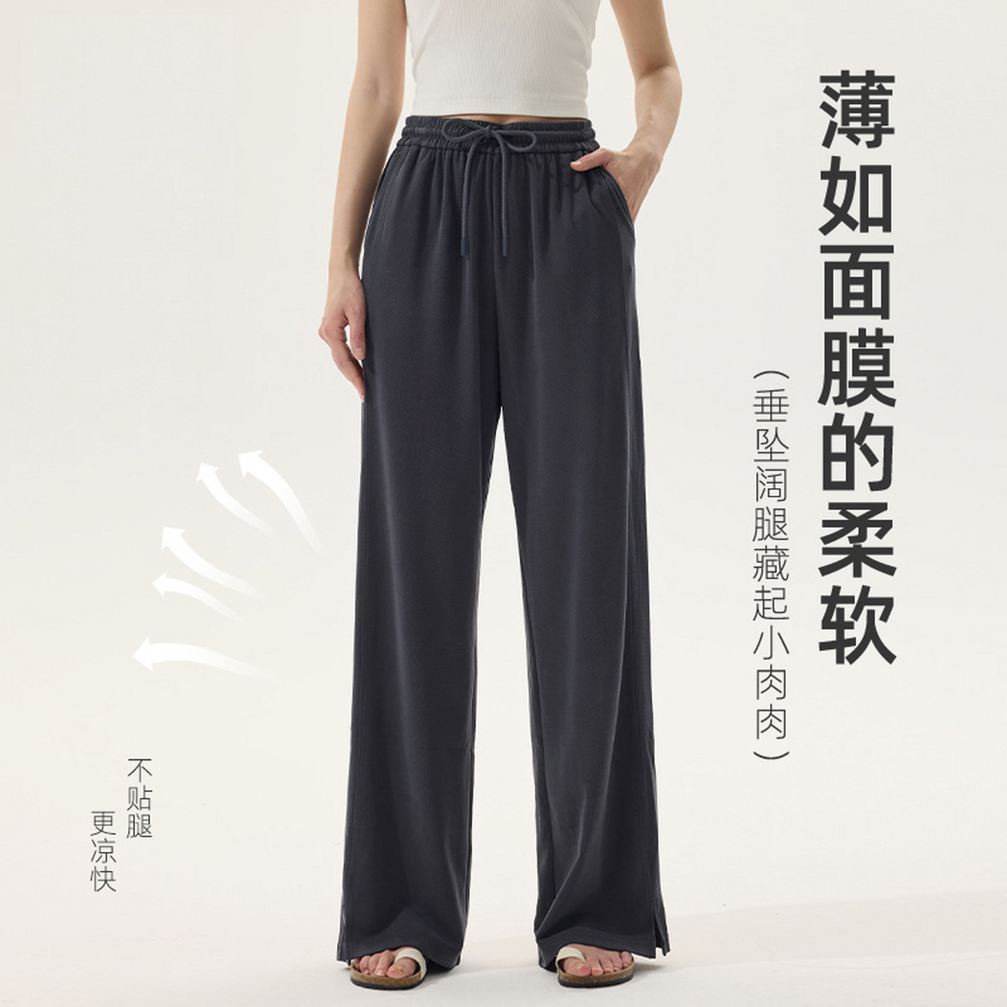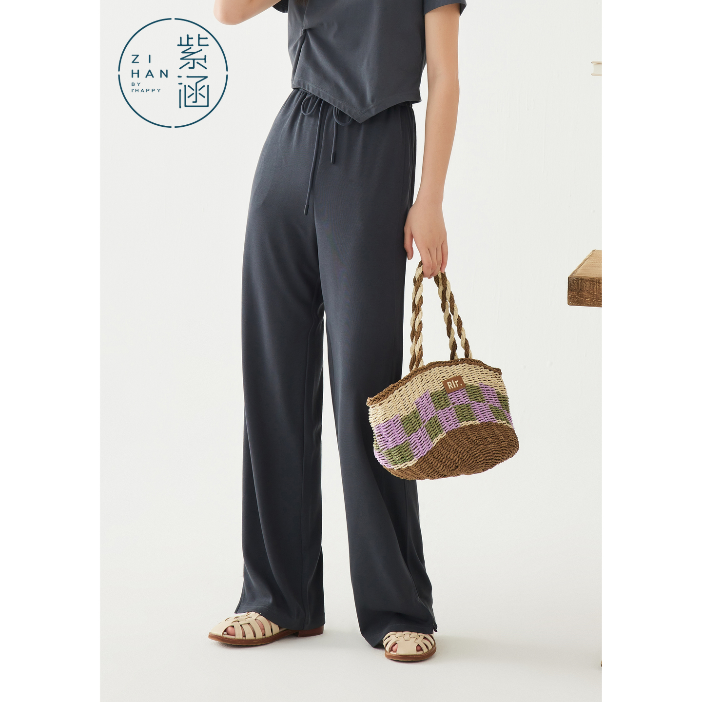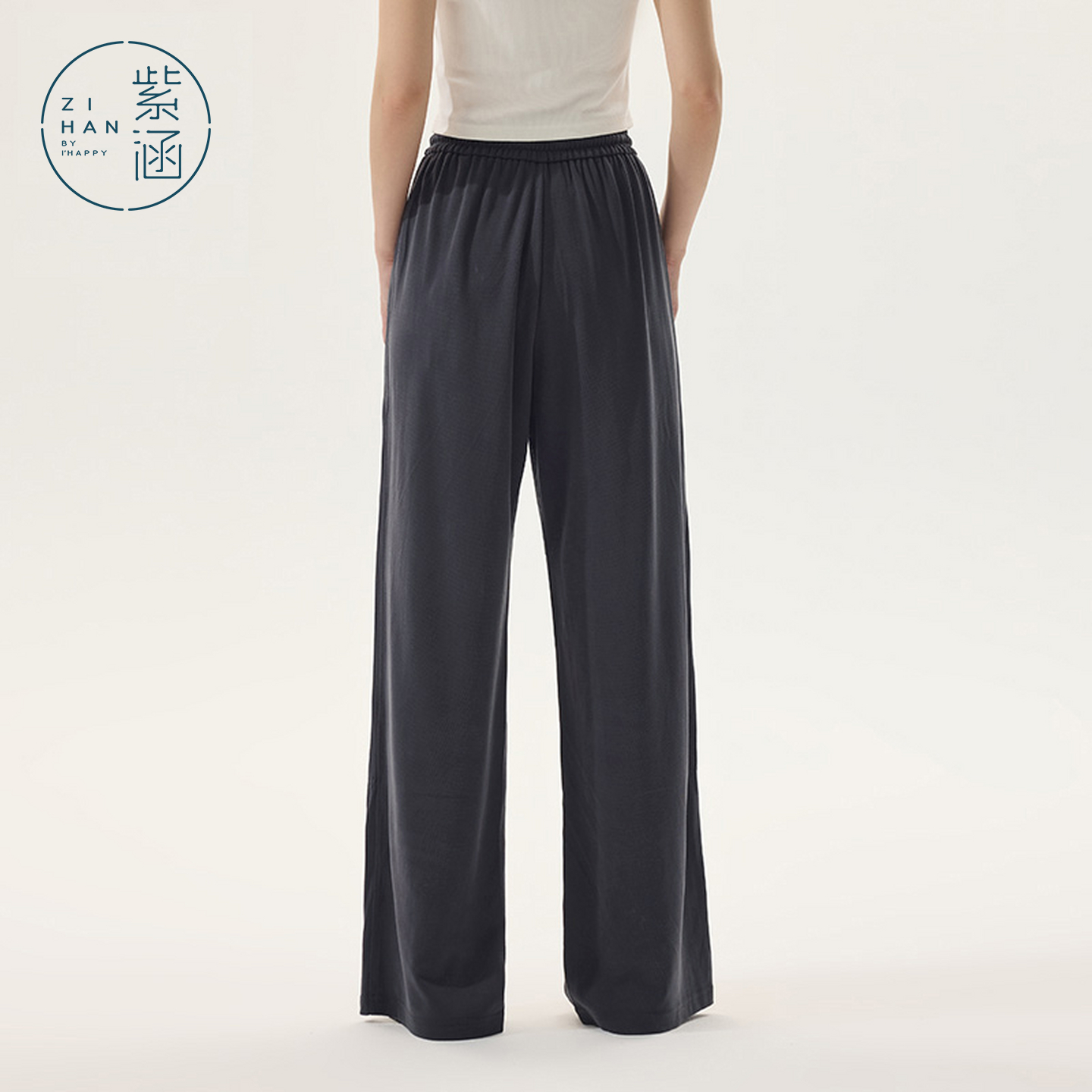 百搭轻薄显瘦高腰休闲长裤 紫涵垂感拖地直筒裤 简约时尚 新款 女夏季