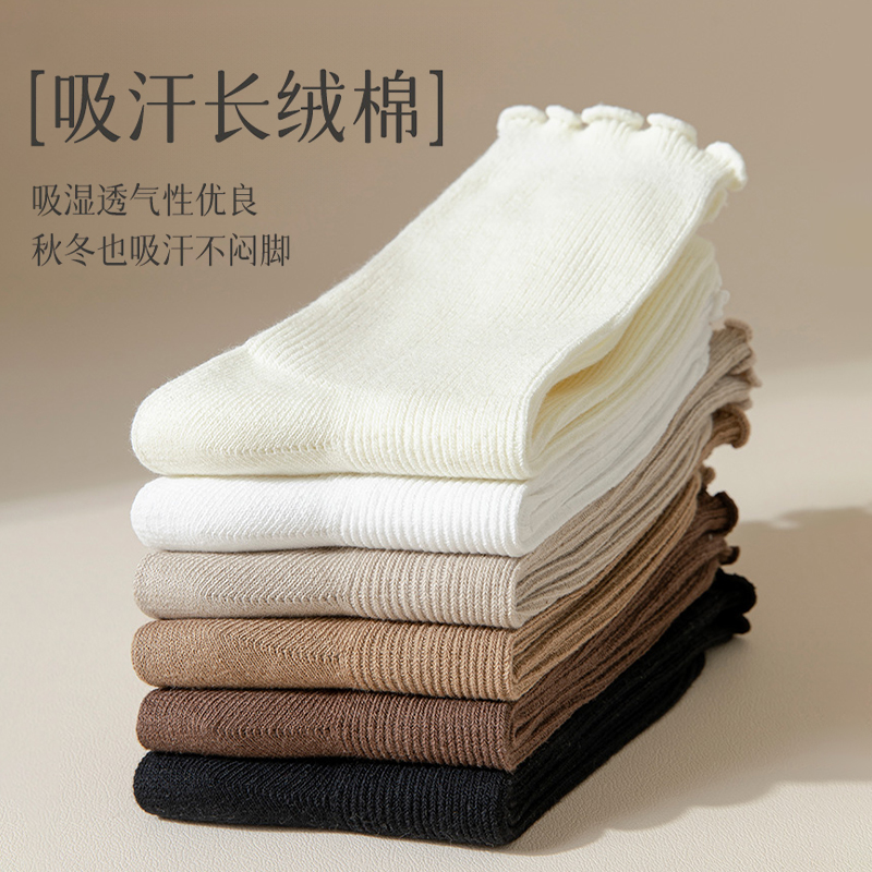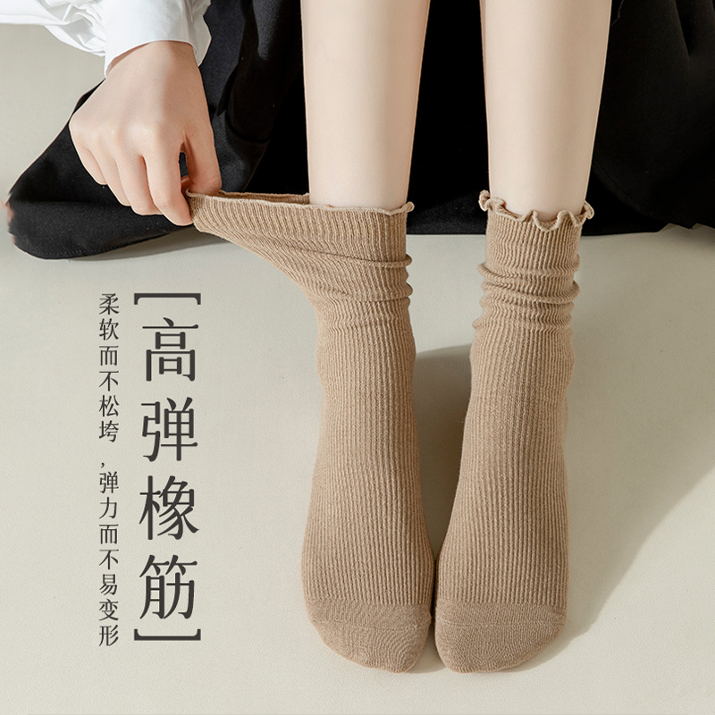 袜子女士纯棉中筒袜堆堆袜女小皮鞋 耐磨不勒脚新疆棉吸汗 乐福鞋