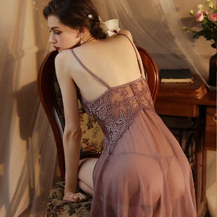 蕾丝情调小胸缎面家居服晨袍吊带睡裙 薄款 睡衣女款 性感纯欲风夏季