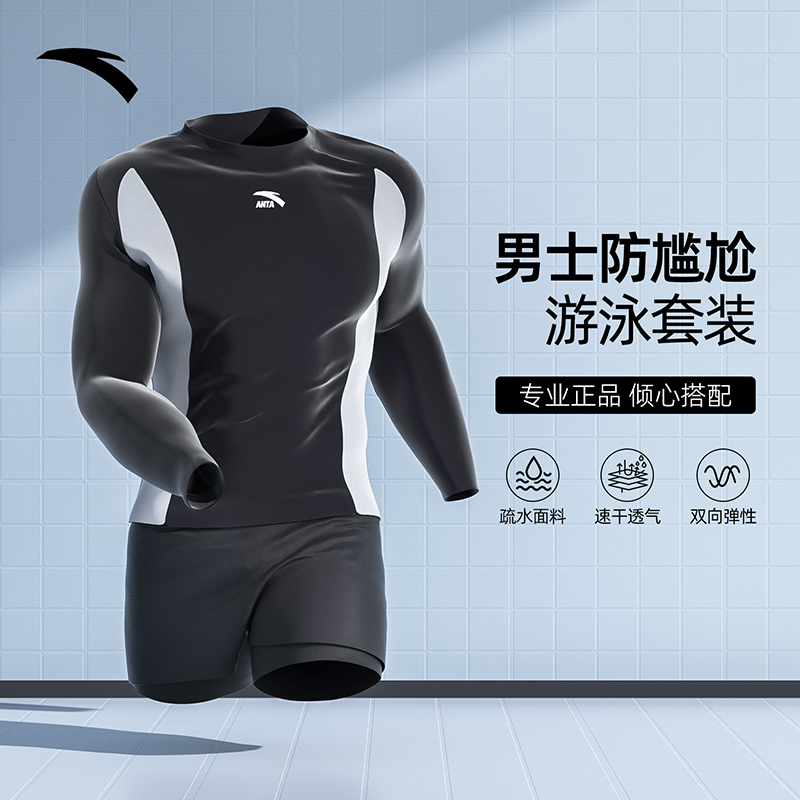 备全套装 安踏泳衣男士 温泉游泳装 专业上衣防尴尬双层泳裤 2025新款