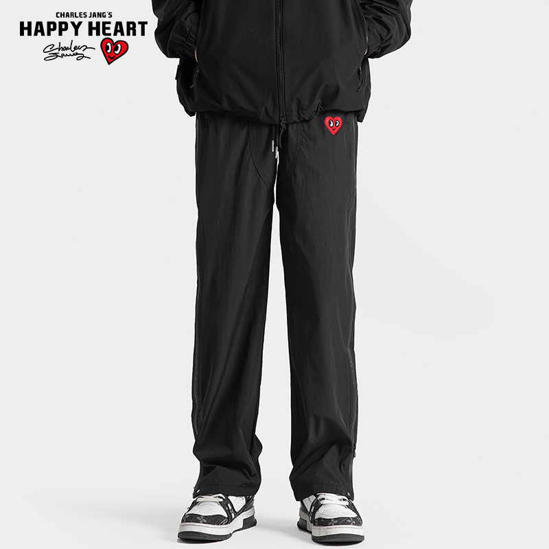 宽松直筒阔腿长裤 查尔斯桃心 新款 男2025春季 侧边拉链开叉休闲裤