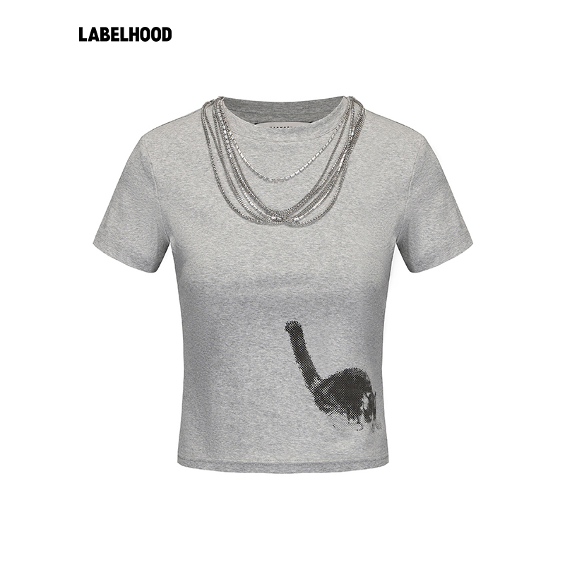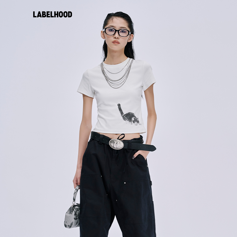MARKGONG 新款 虞书欣同款 T恤2025秋季 女 蕾虎小猫印花短袖