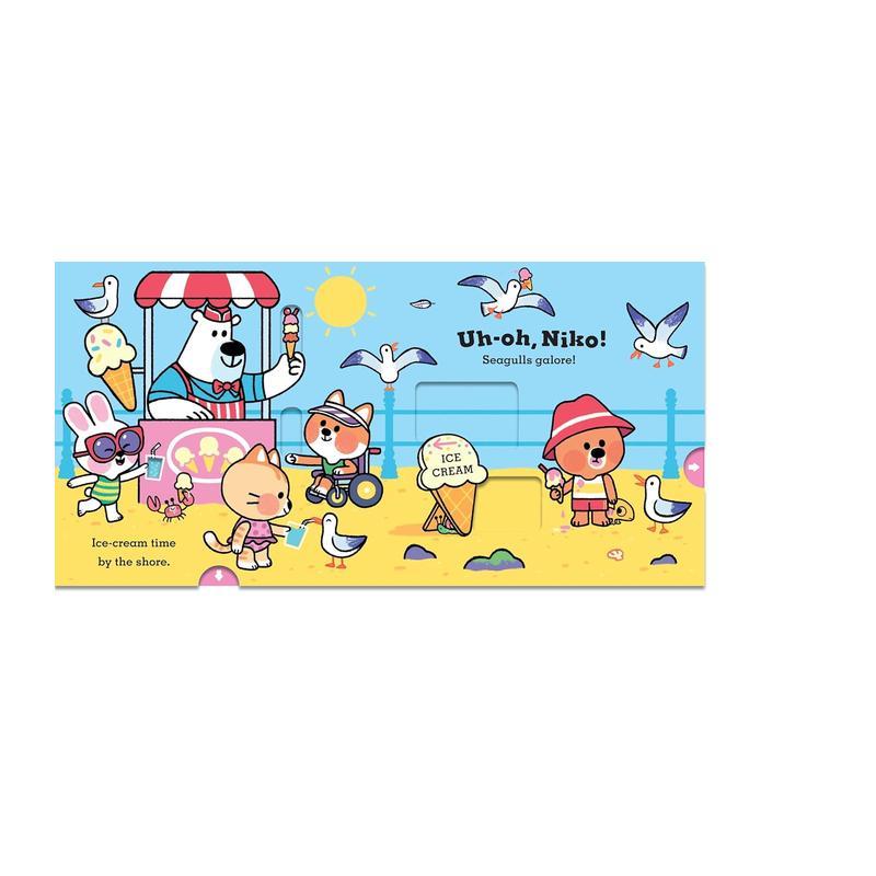 Beach 英语早教进口童书 海滩 Niko 小熊尼可 抽拉翻翻机关书 英文儿童趣味互动绘本 The 预售
