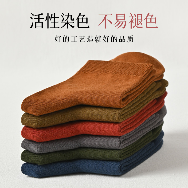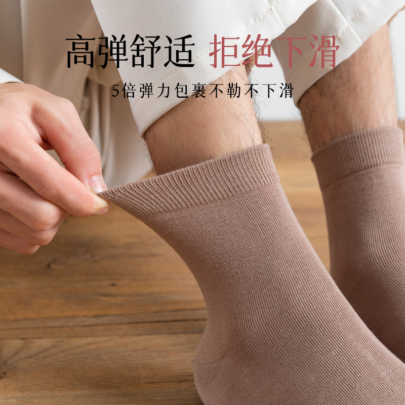 莹柔100%棉袜子男士 吸汗防臭纯色透气抗菌柔软舒适袜 中筒袜秋冬季